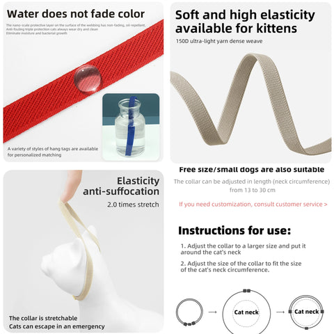 LUXURY AND ELEGANT: With our cat collars, you can have peace of mind knowing that your cherished cat is good. At the same time, the collars feature a simple and elegant solid color design, with upgraded quality for both the collar and the metal buckle that won't fade, allowing your cat to exude a sense of luxury.Whether you want to keep track of their whereabouts at all times or just add a touch of style to their appearance.