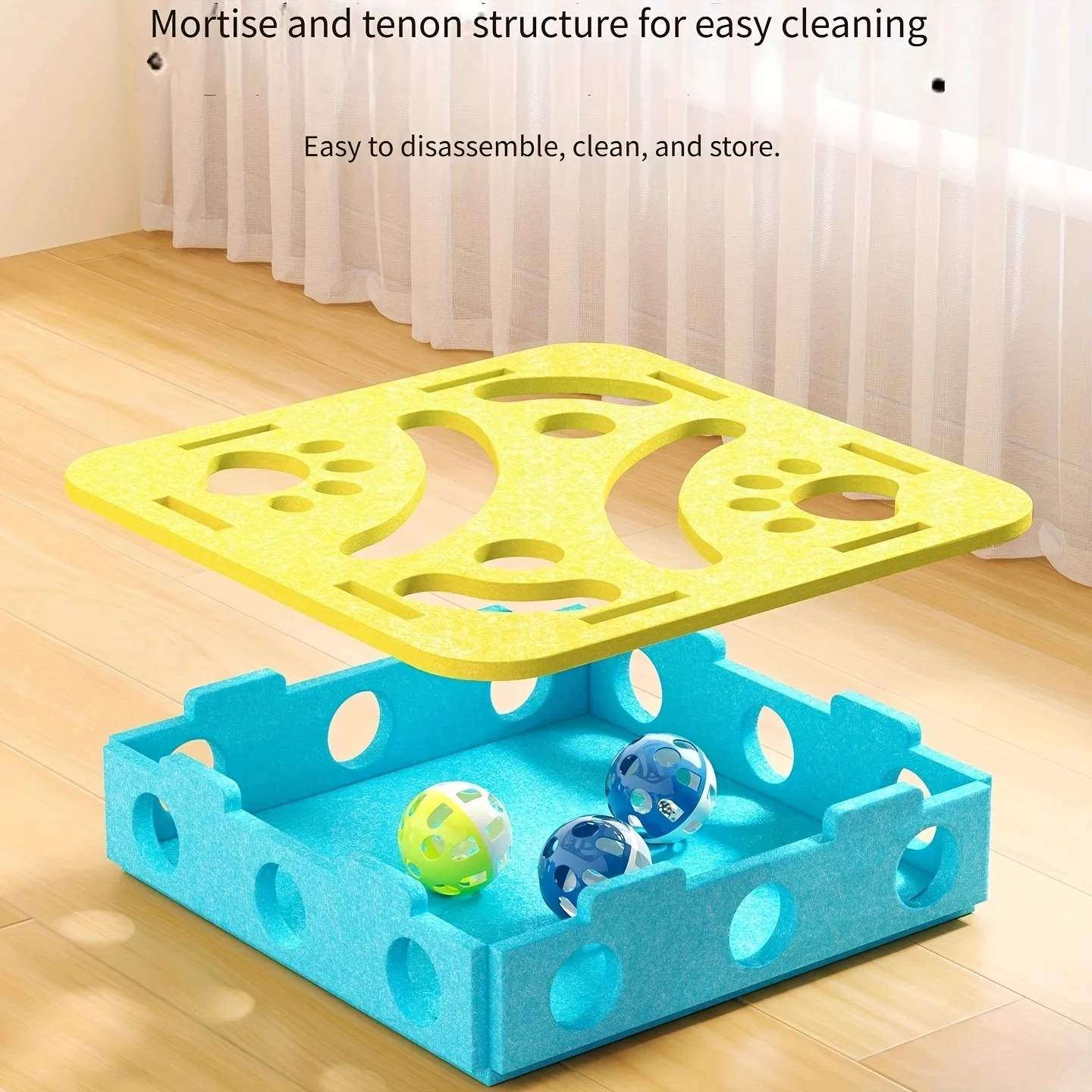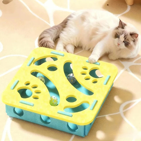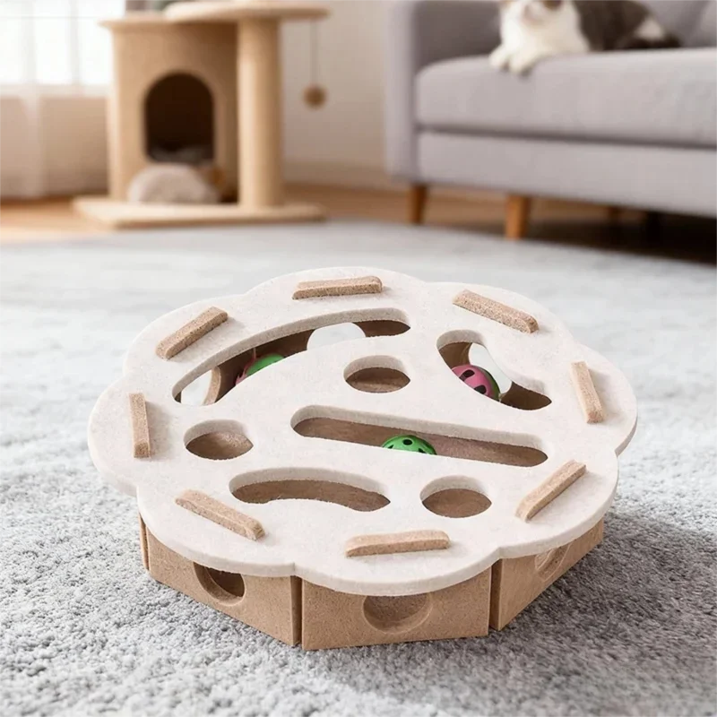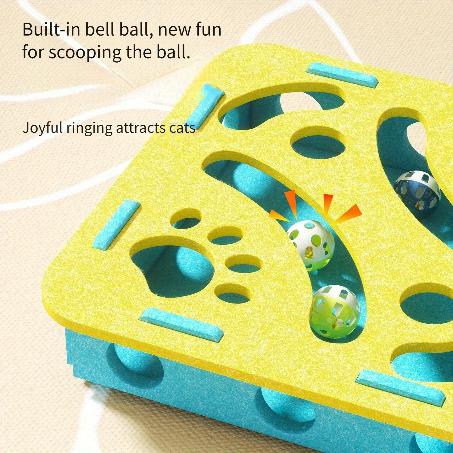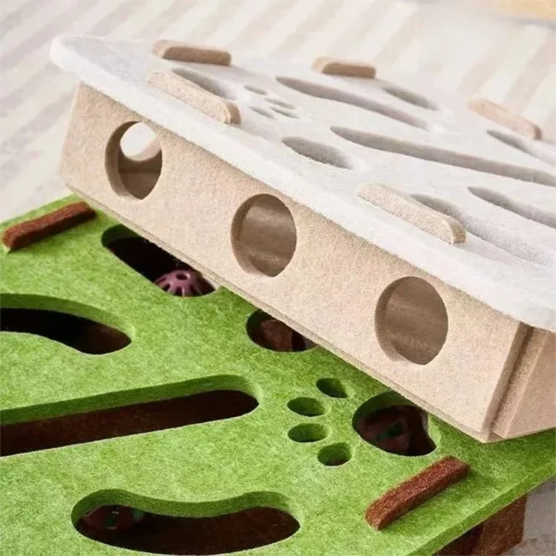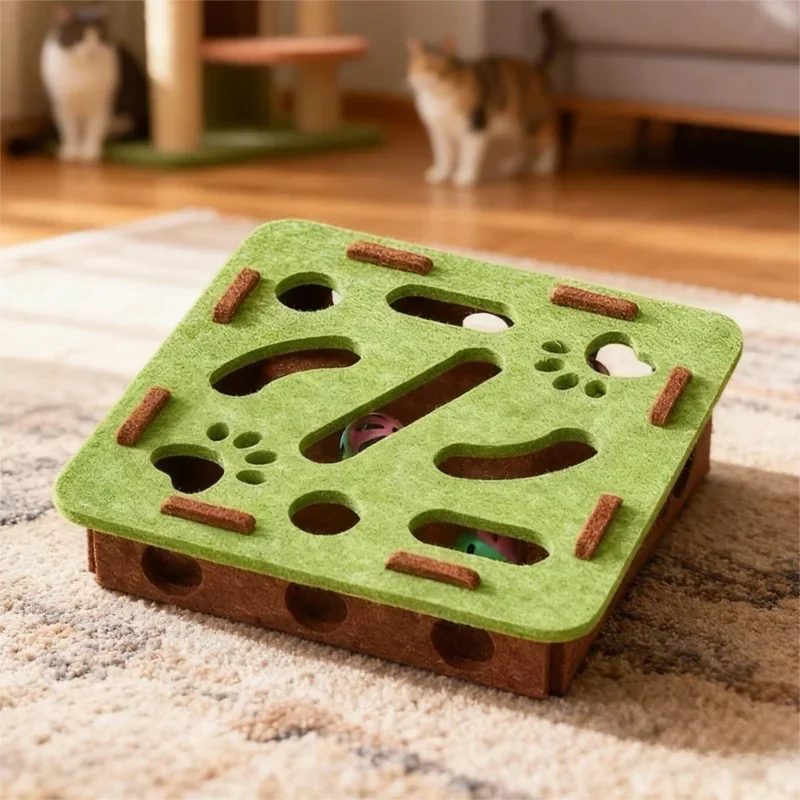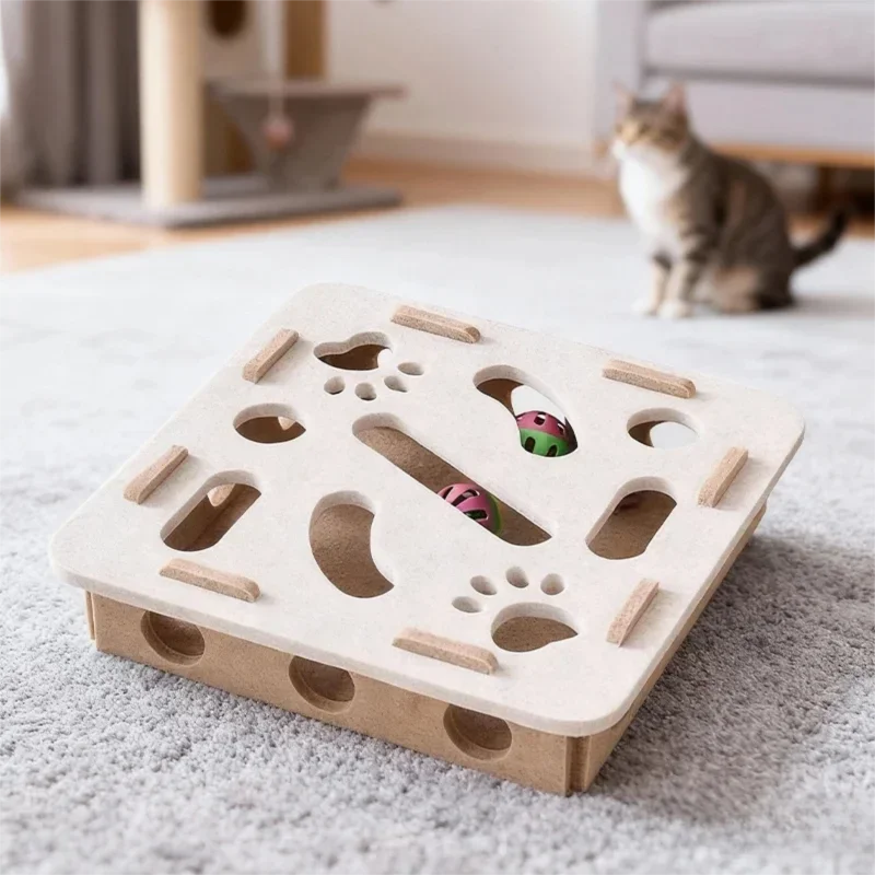 New Cat Puzzle Toy Felt Tunnel Box Cat Playing Toy With Ball - Square Beige / With 3 bells Version