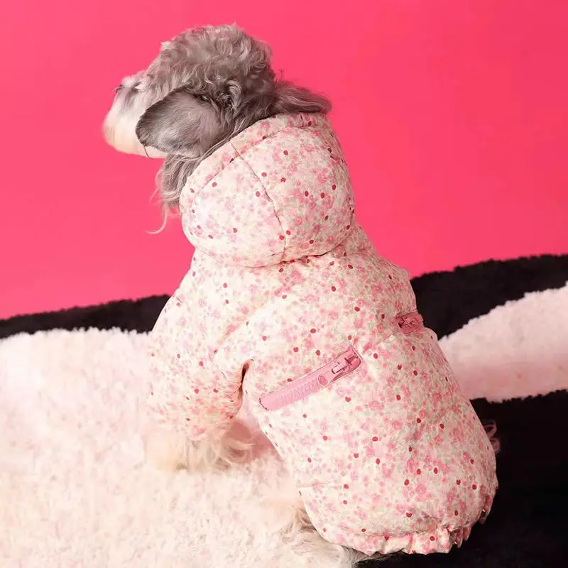 Pet Floral Pink Dog Parkas Autumn Winter Schnauzer Teddy Dog Sale