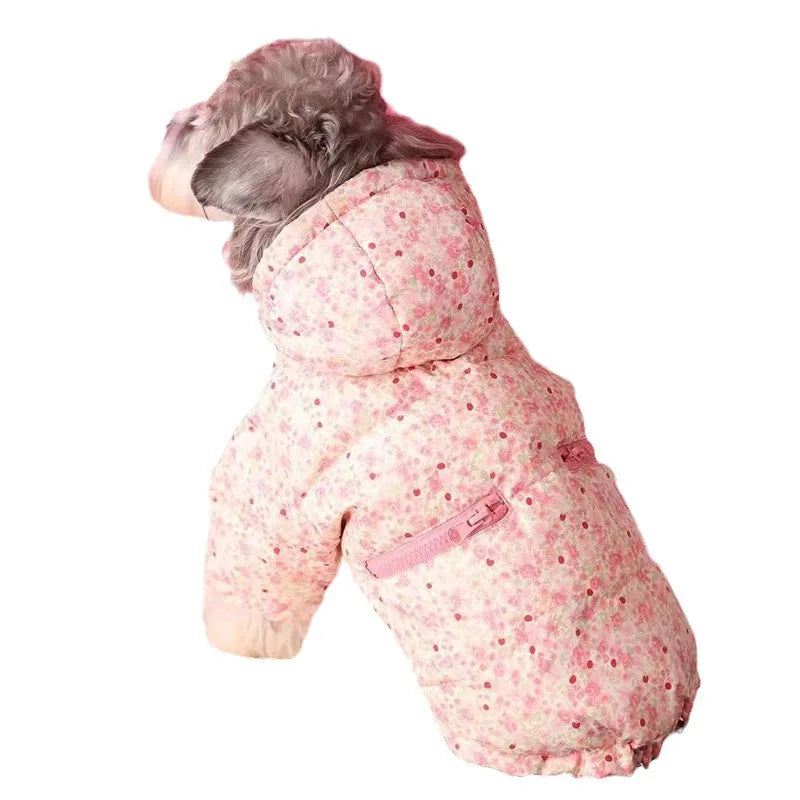 Pet Floral Pink Dog Parkas Autumn Winter Schnauzer Teddy Dog - 1 / 2XL