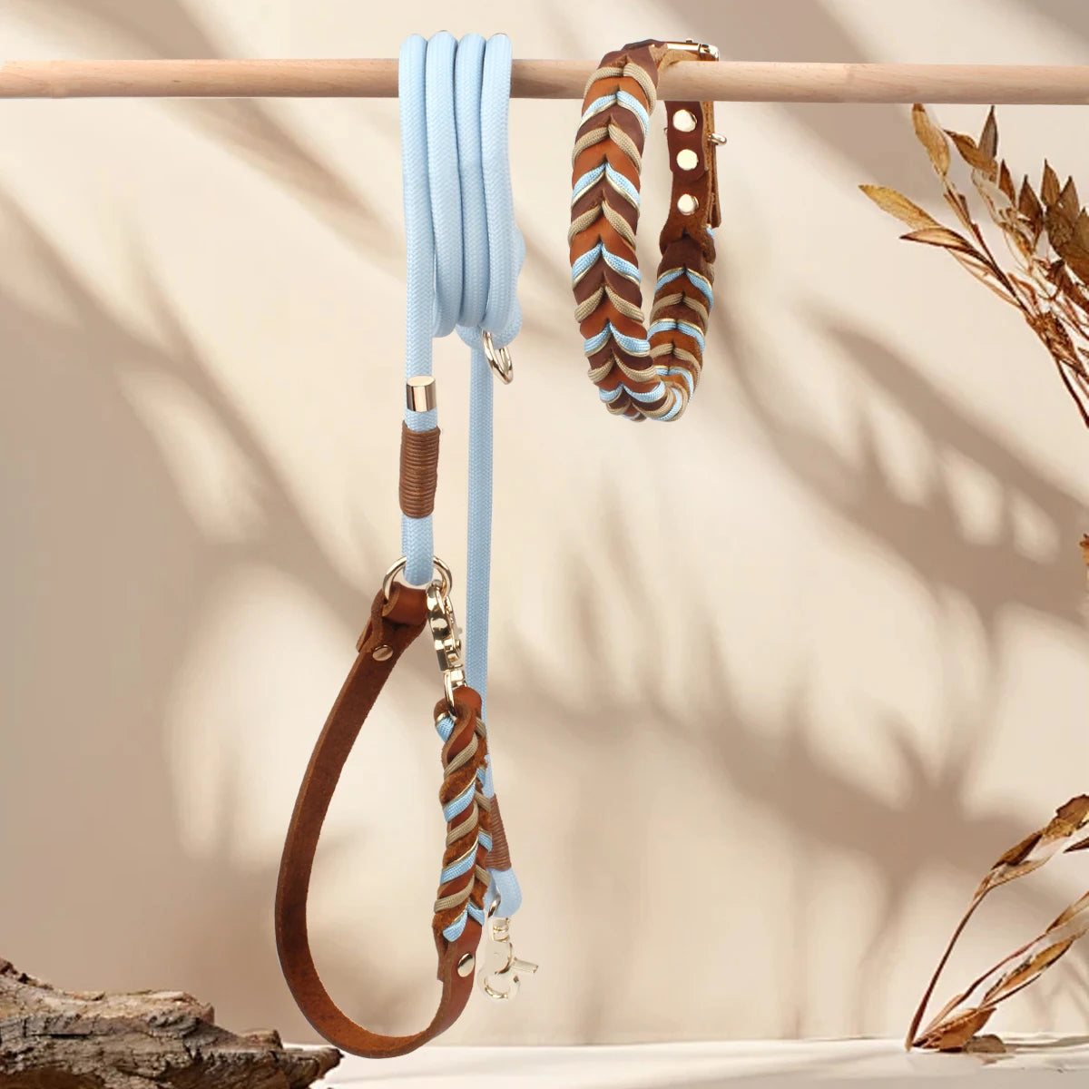 New Style Leather Leashes And Collars For You Dog Soft Nylon Braided Pet Shepherd Collar Medium Large Dogs Strong Pulling Set